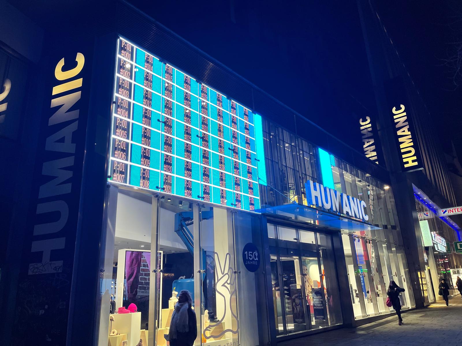 Die Mariahilfer Straße zählt zu den meistbesuchten Einkaufsstraßen des Landes. Der transparente LED-Screen sorgt für eine beeindruckende visuelle Präsenz, ohne dabei den Blick ins Schaufenster zu verdecken – ideal für moderne Retail-Erlebnisse.